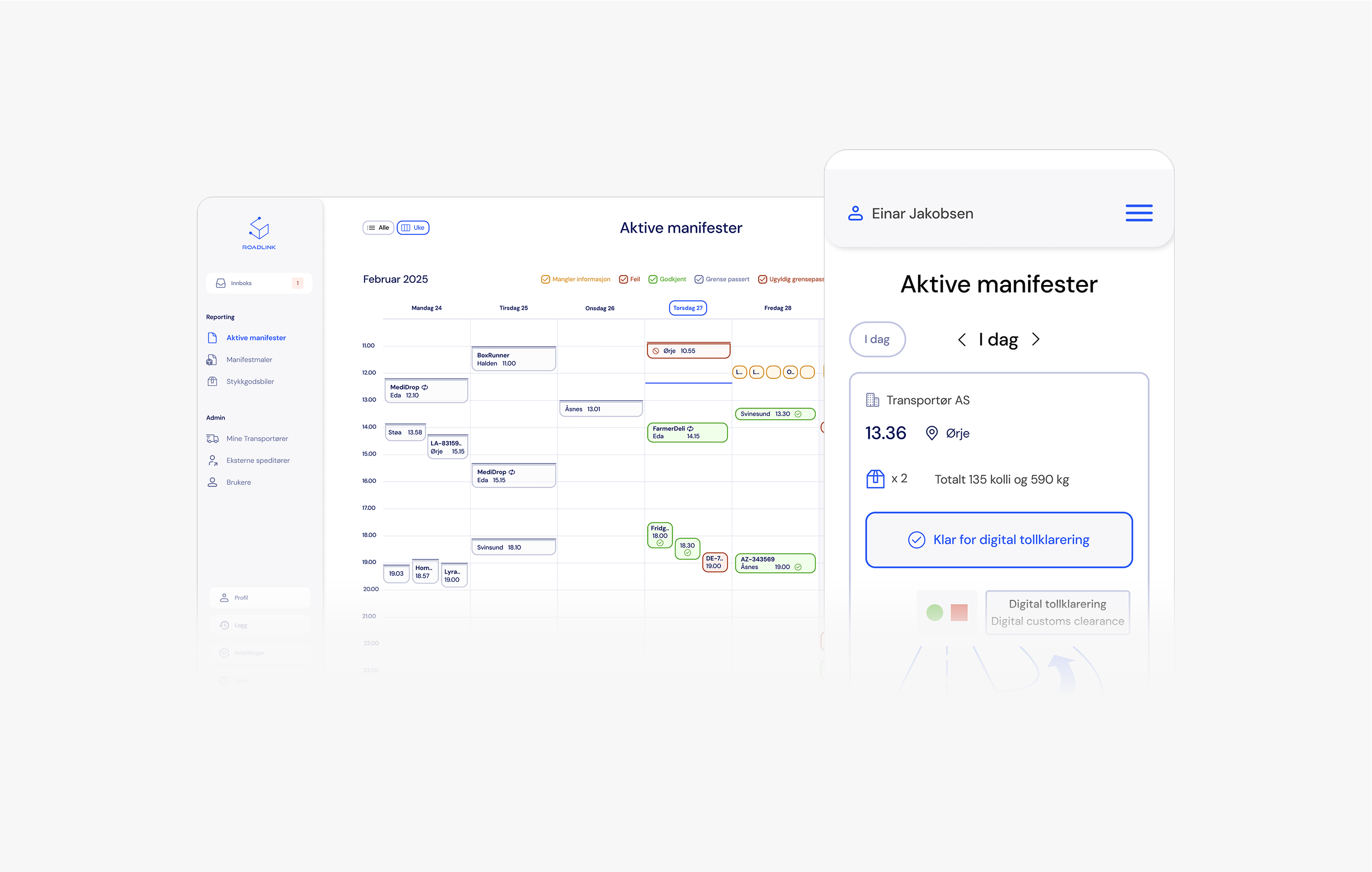 I løpet av få måneder fikk Skypass Road et tydelig løft. Plattformen gir nå brukerne full oversikt over sine grensekryssende transporter gjennom en tydelig, visuell kalendervisning. Det er enkelt å planlegge og følge opp transportoppdrag, og all nødvendig dokumentasjon kan lastes opp direkte til Tolletaten via plattformen.
